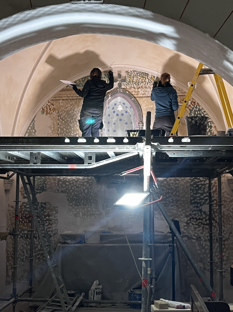 Des peintures anciennes ont été révélées derrière la voûte de la chapelle